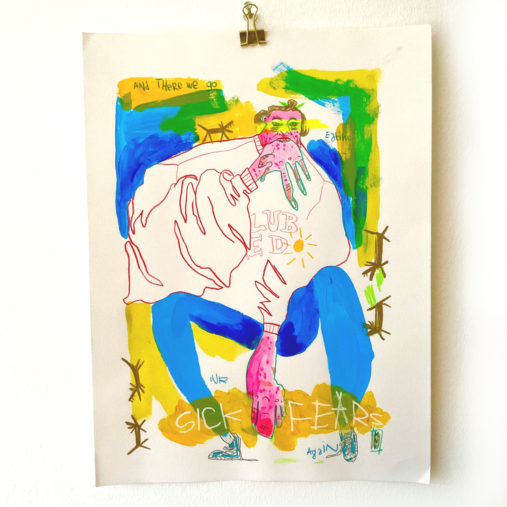 Dessins divers réalisés sur plusieurs années et trop de nuits - acrylique, pastel sec, fusain, haine et amour de soi sur papier